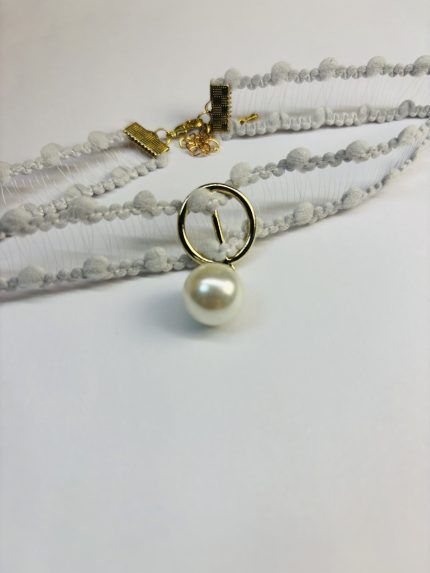 White Lace Choker with Pearl and Gold-Toned Ring Detail