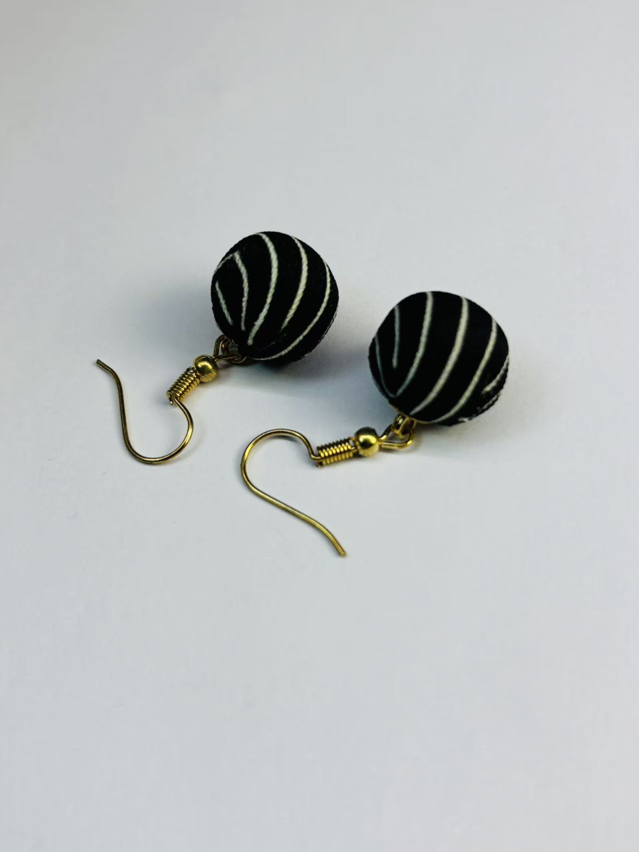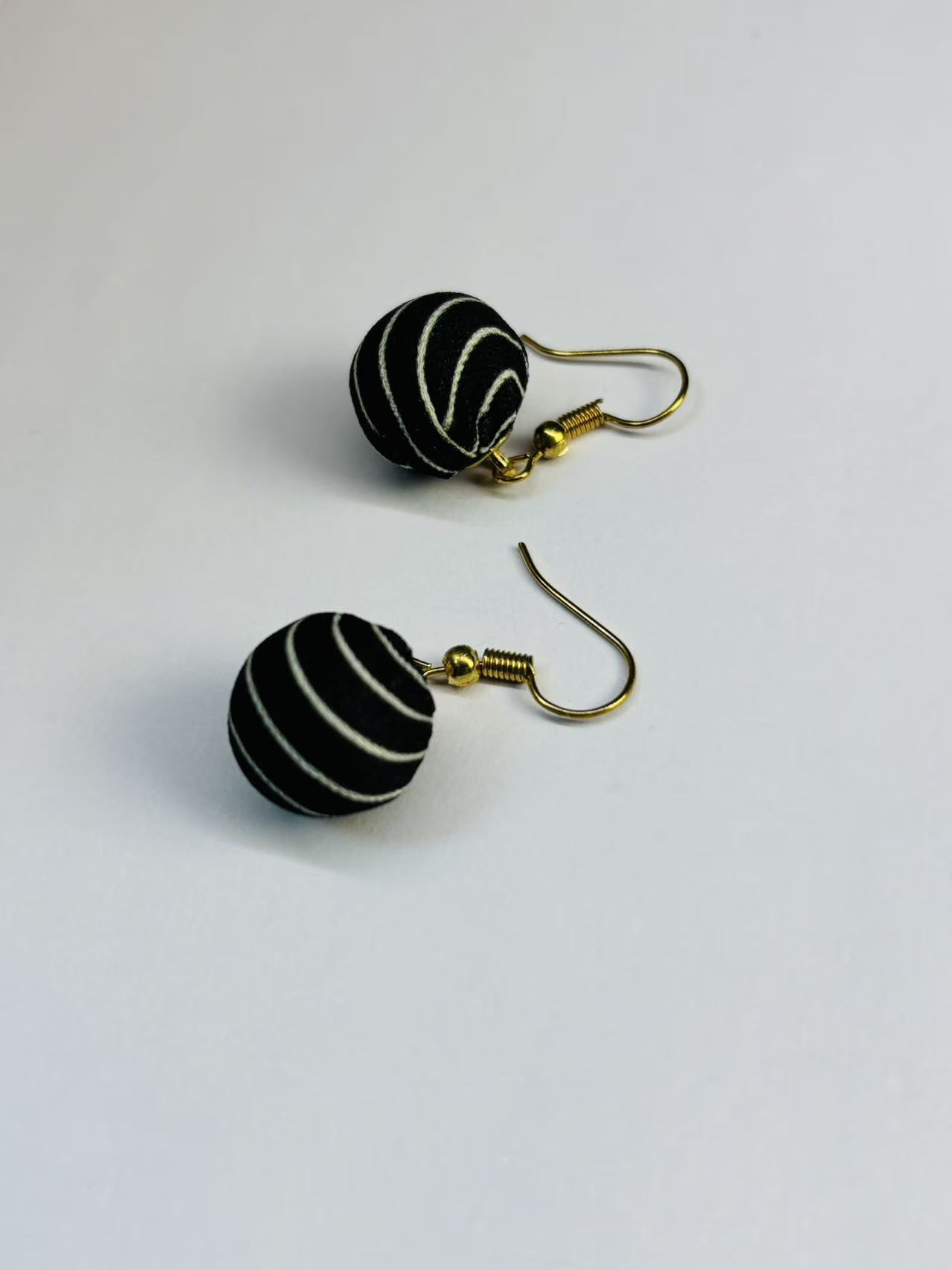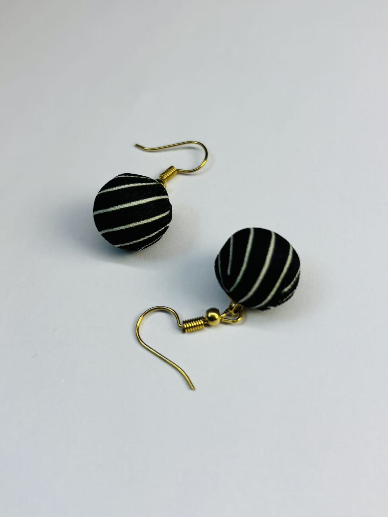 Be the first to review “Black and White Striped Fabric Ball Drop Earrings”