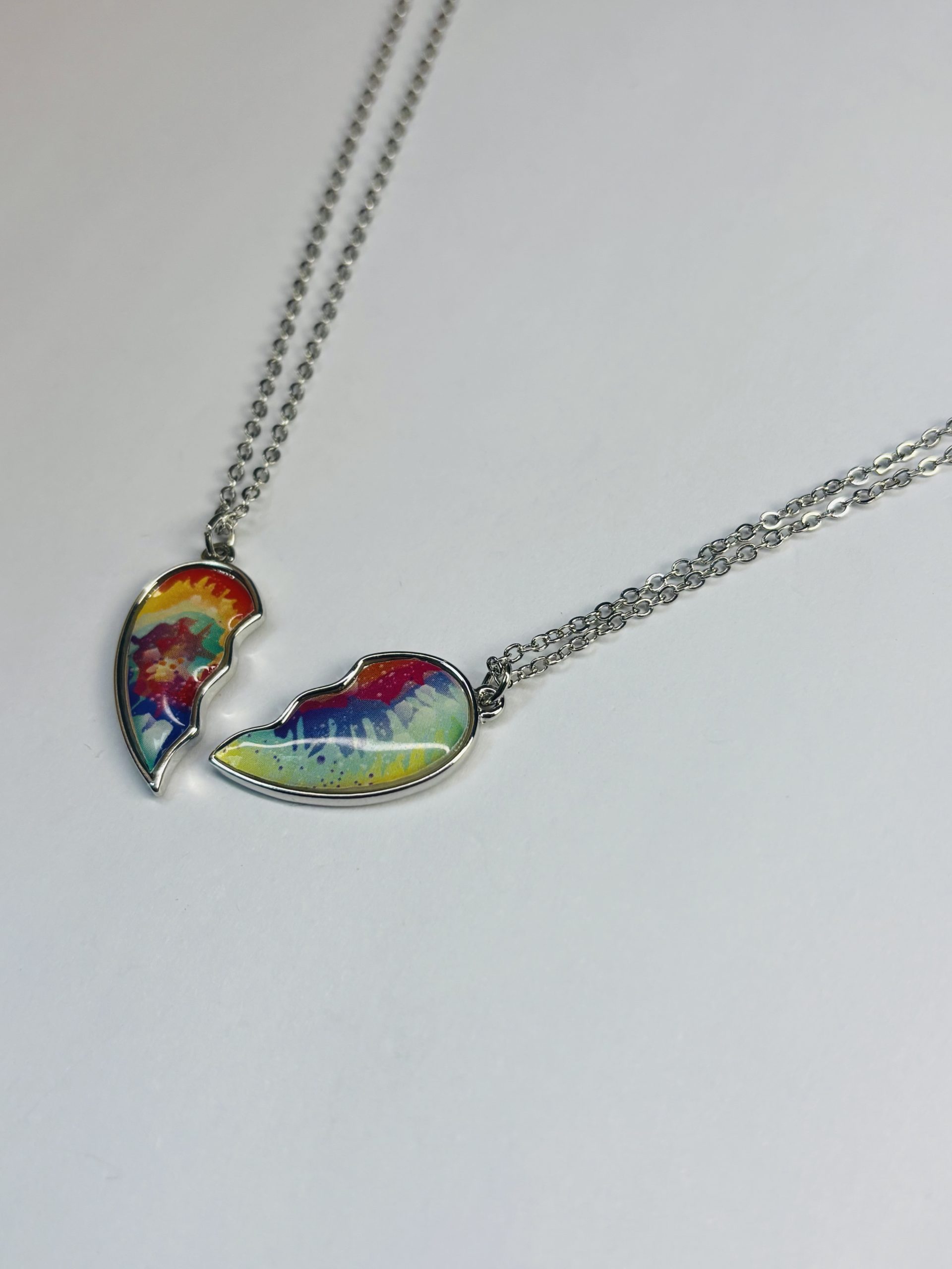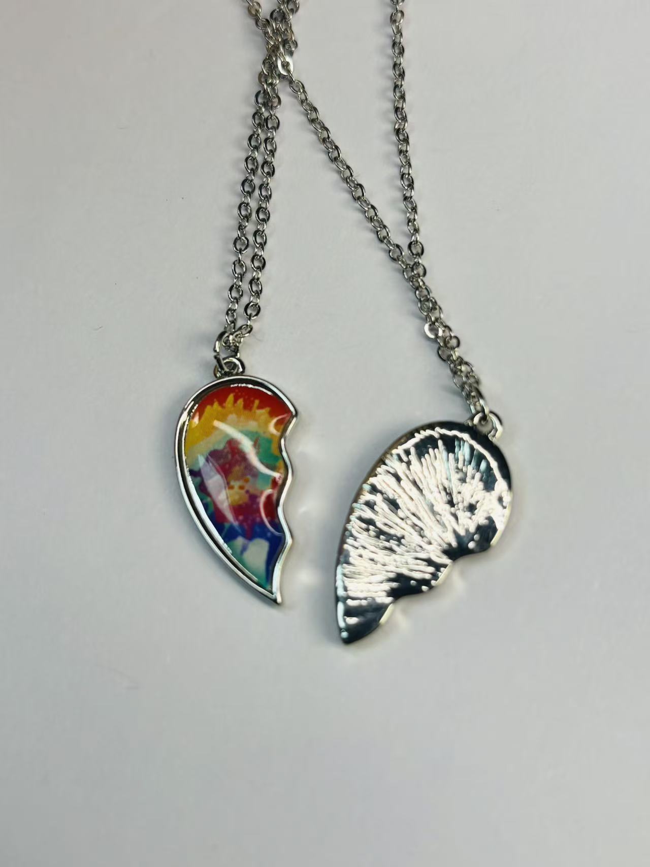| Colorful Enamel Broken Heart Pendant Necklace