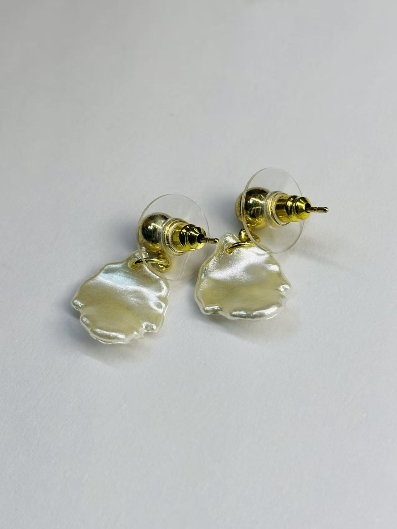 | Golden Bead Pearl White Petal Stud Earrings