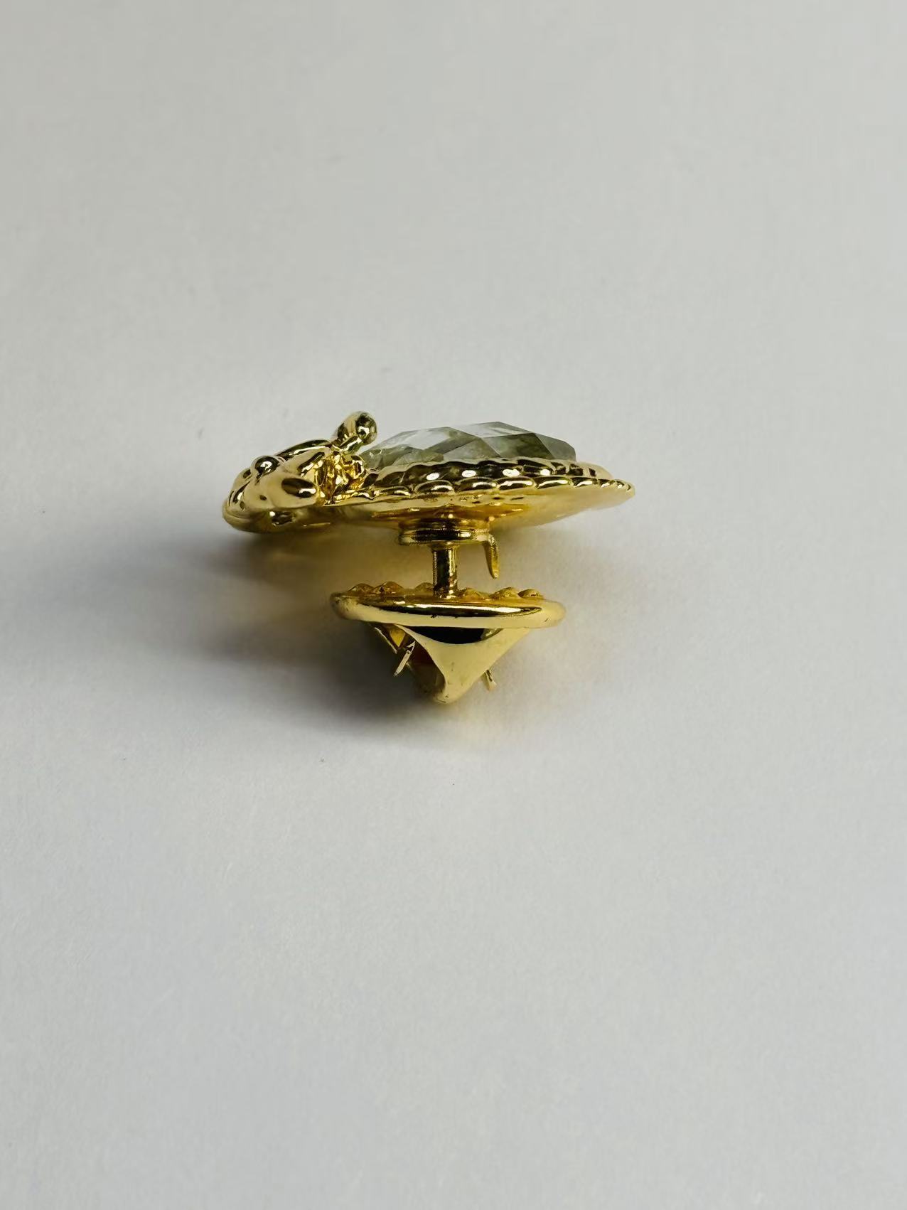 | Golden Vintage Style Zircon-Embedded Brooch