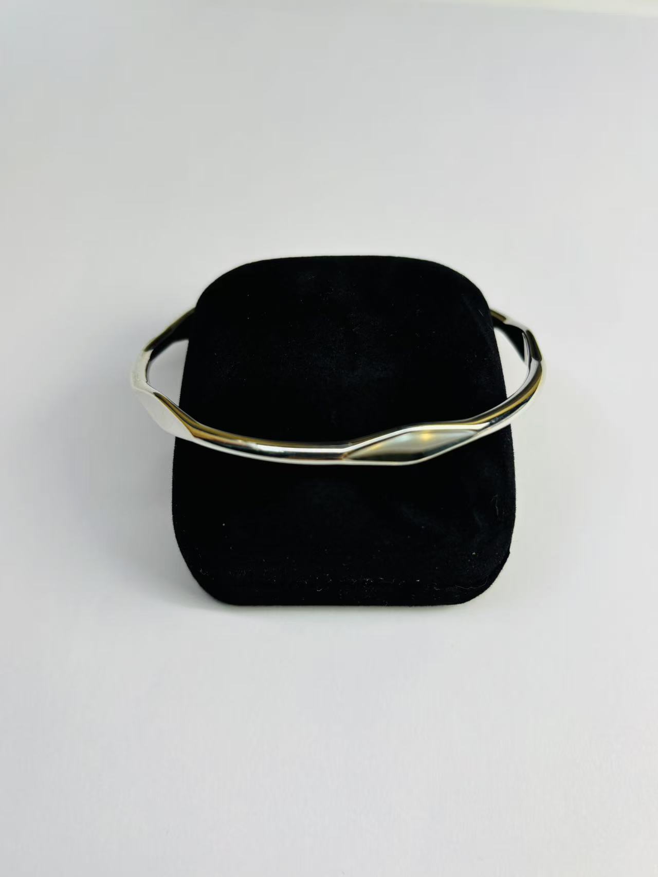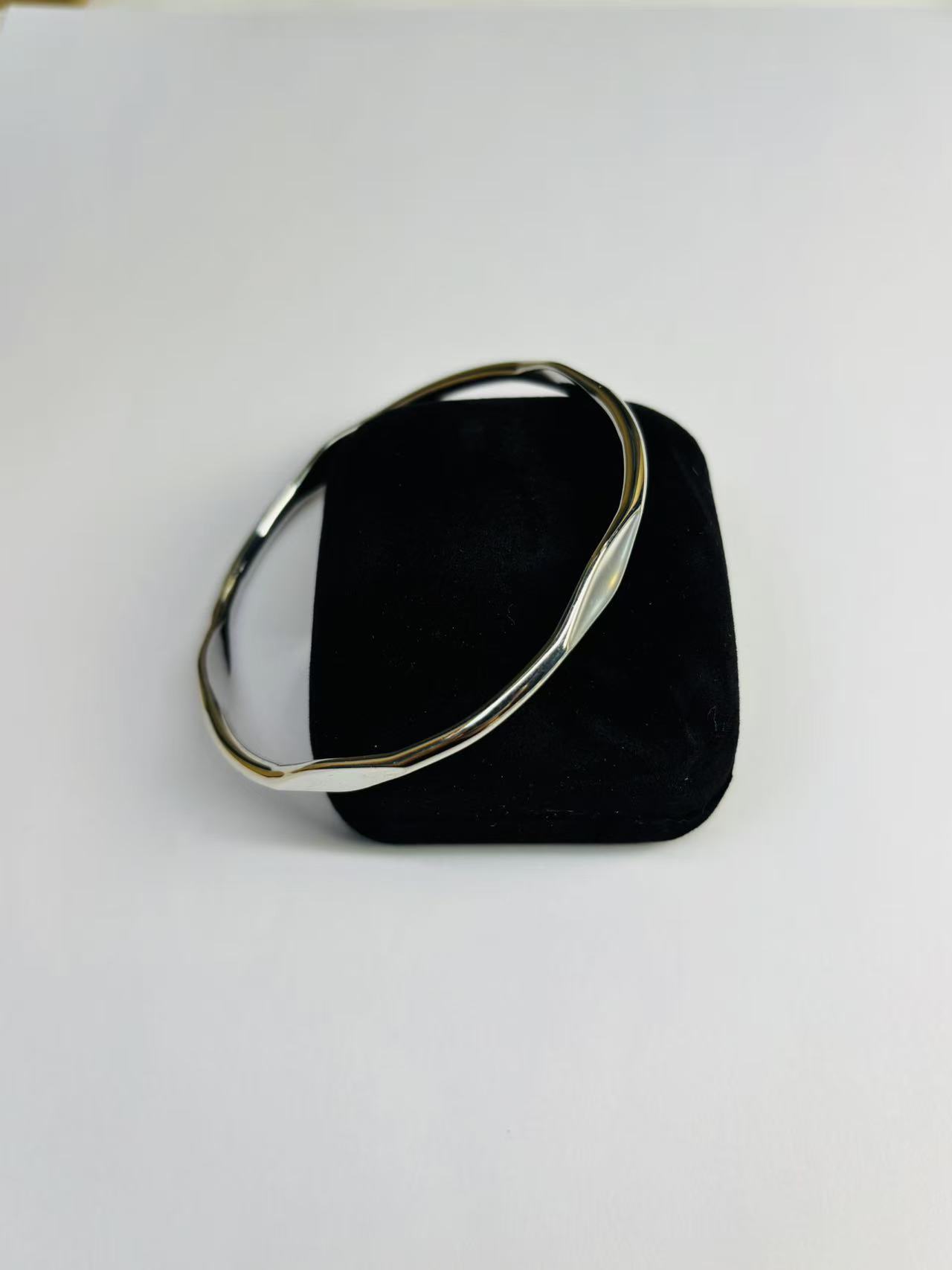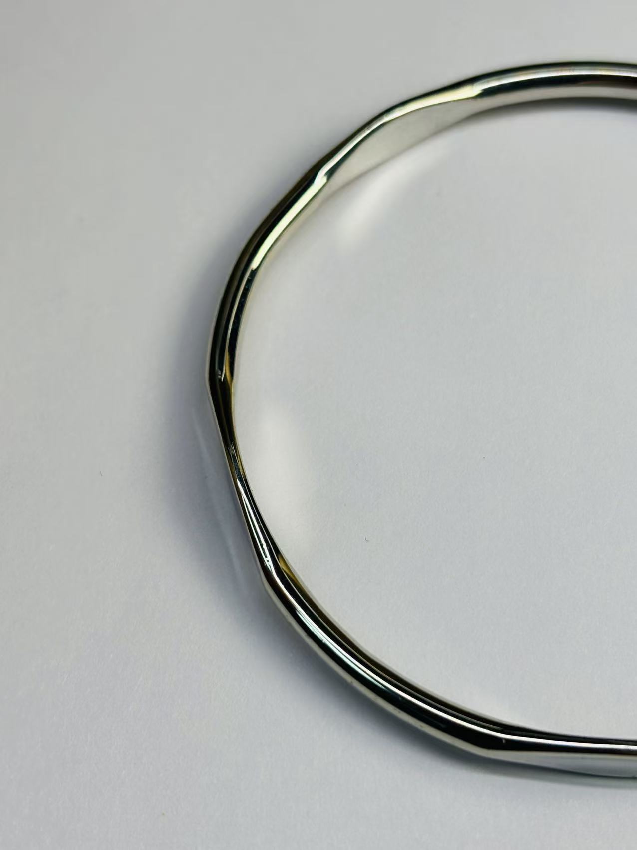 Be the first to review “Minimalist Geometric Faceted Silver Bangle”