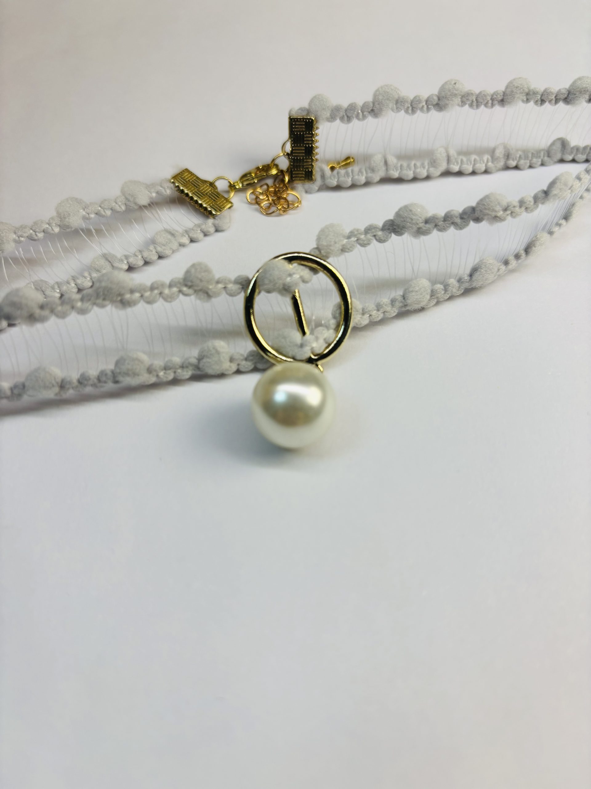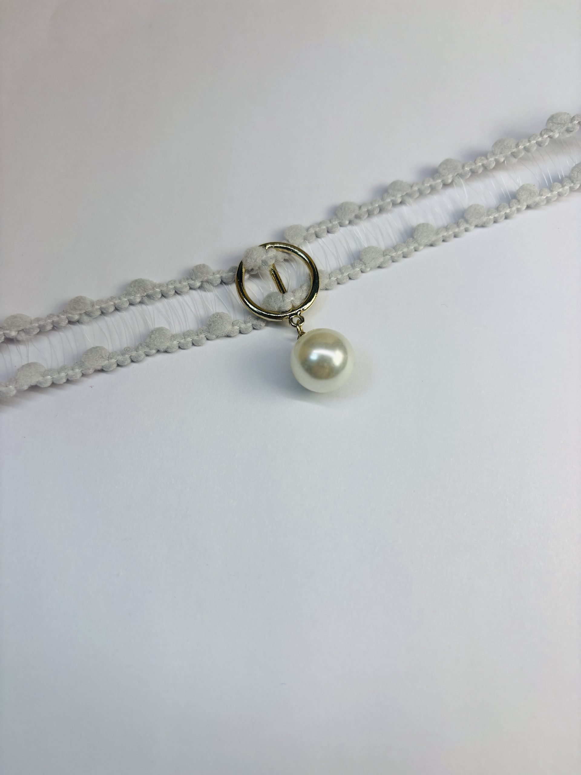 | White Lace Choker with Pearl and Gold-Toned Ring Detail